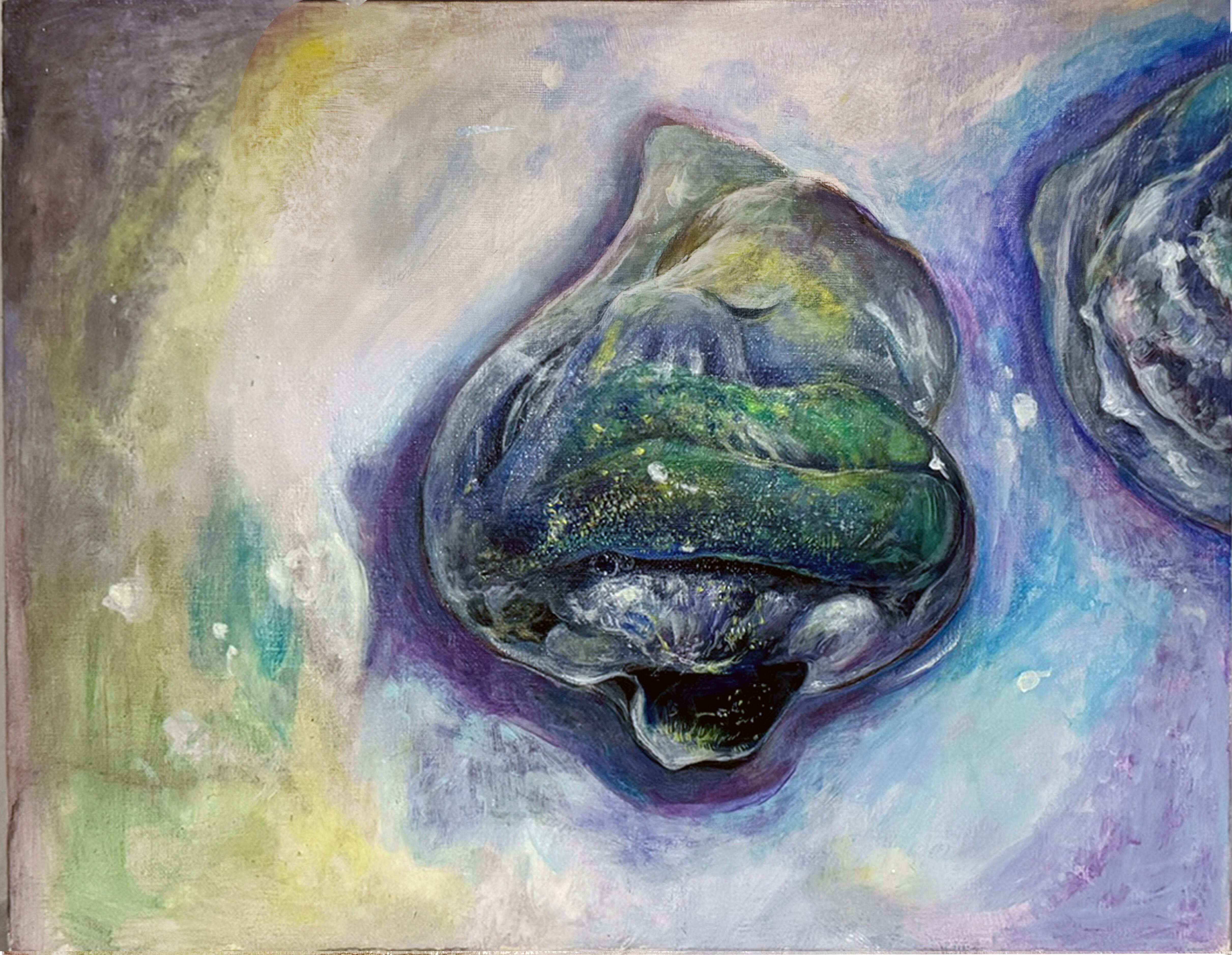 キャンバス、ジェッソ、油彩、下描きにセピア顔料(アオリイカ墨由来)