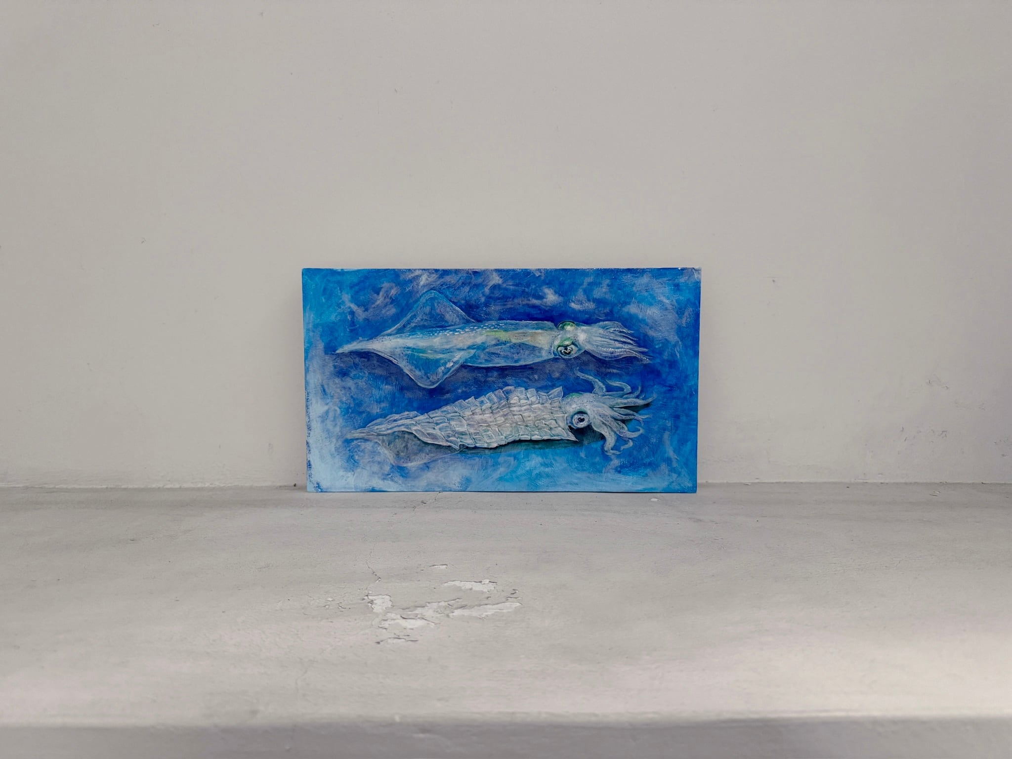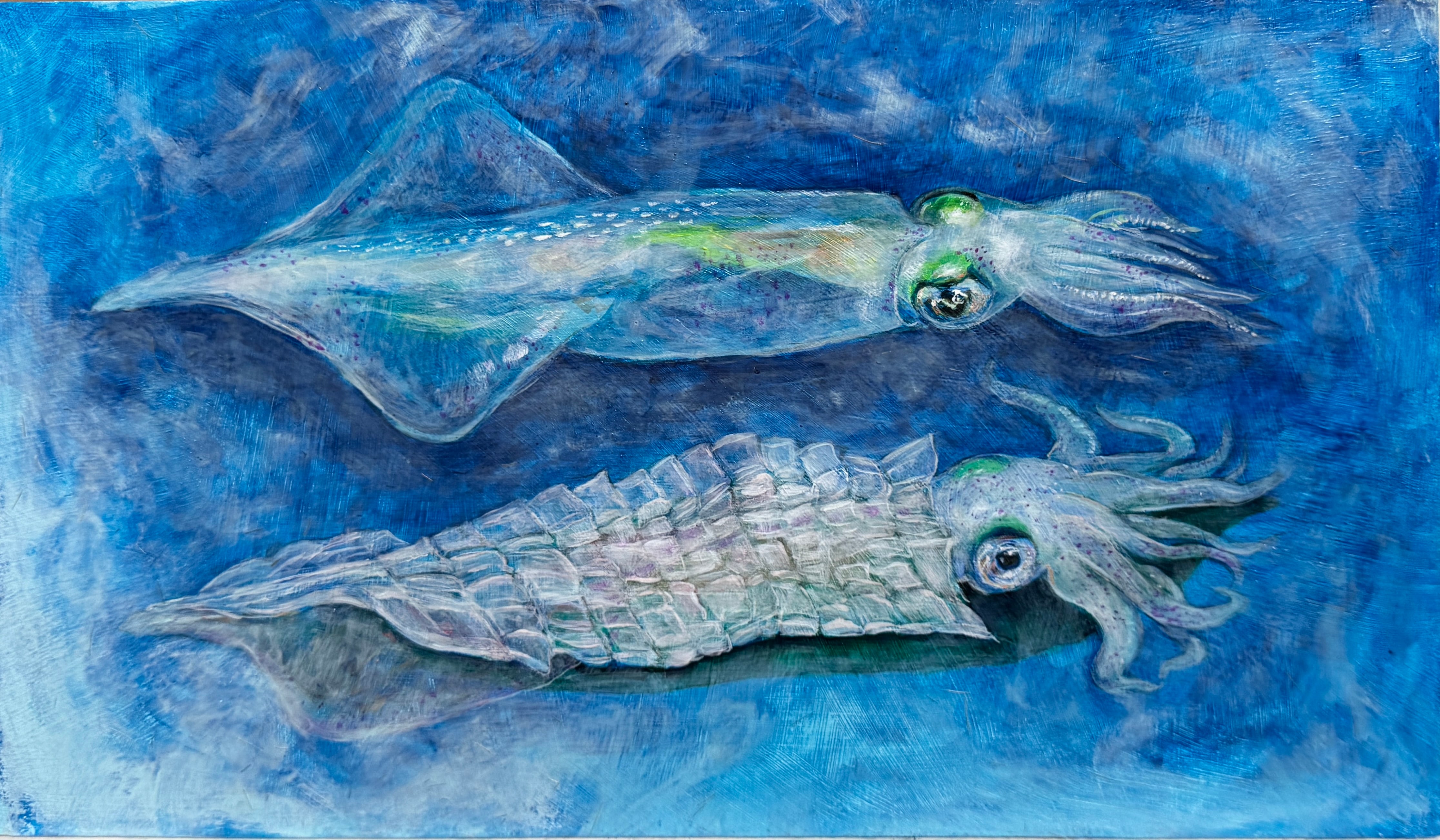 木製パネル、ジェッソ、油彩、下描きにセピア顔料(ケンサキイカ由来)
