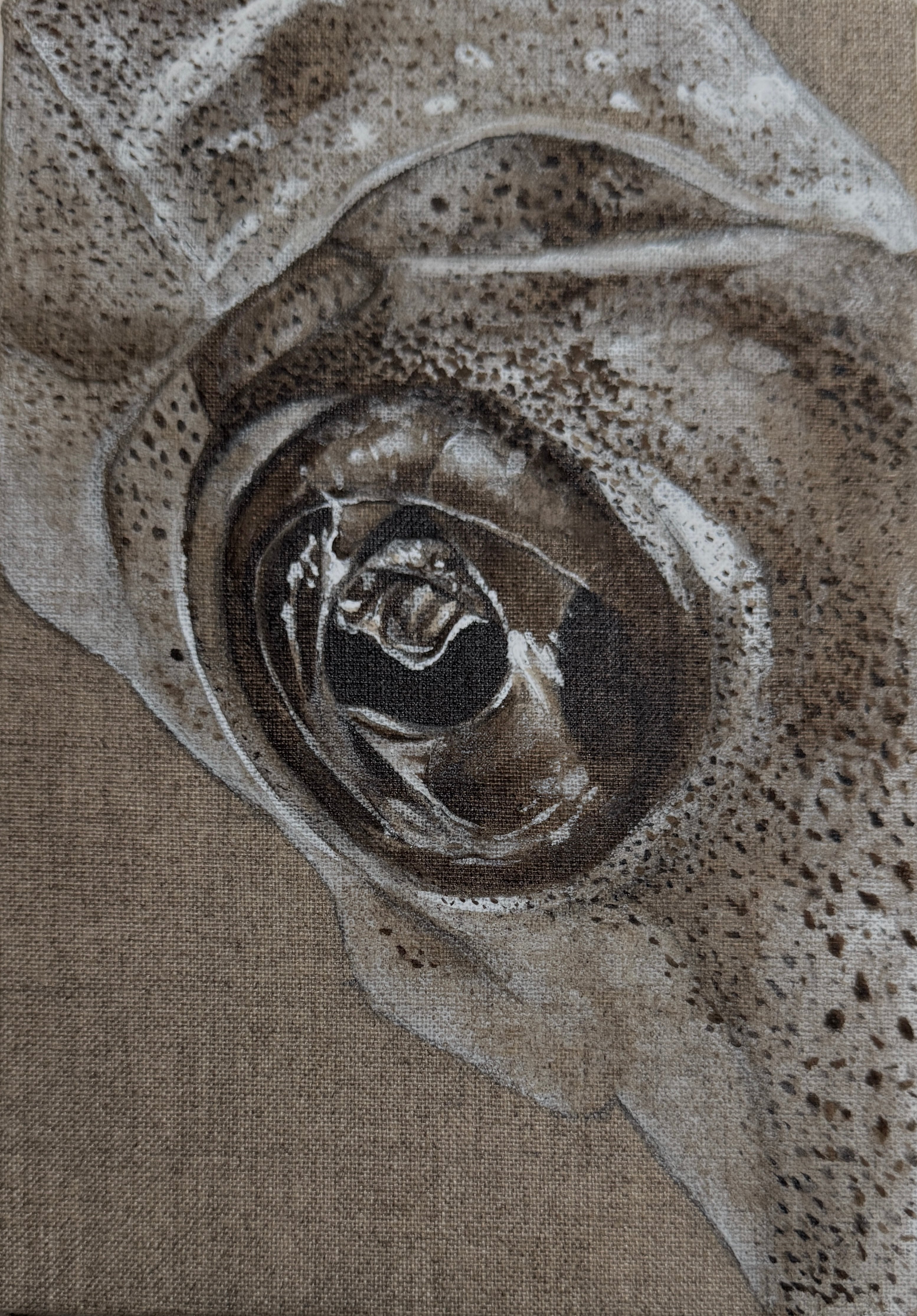 キャンバス、セピア顔料、イカ胡粉、アラビアゴム