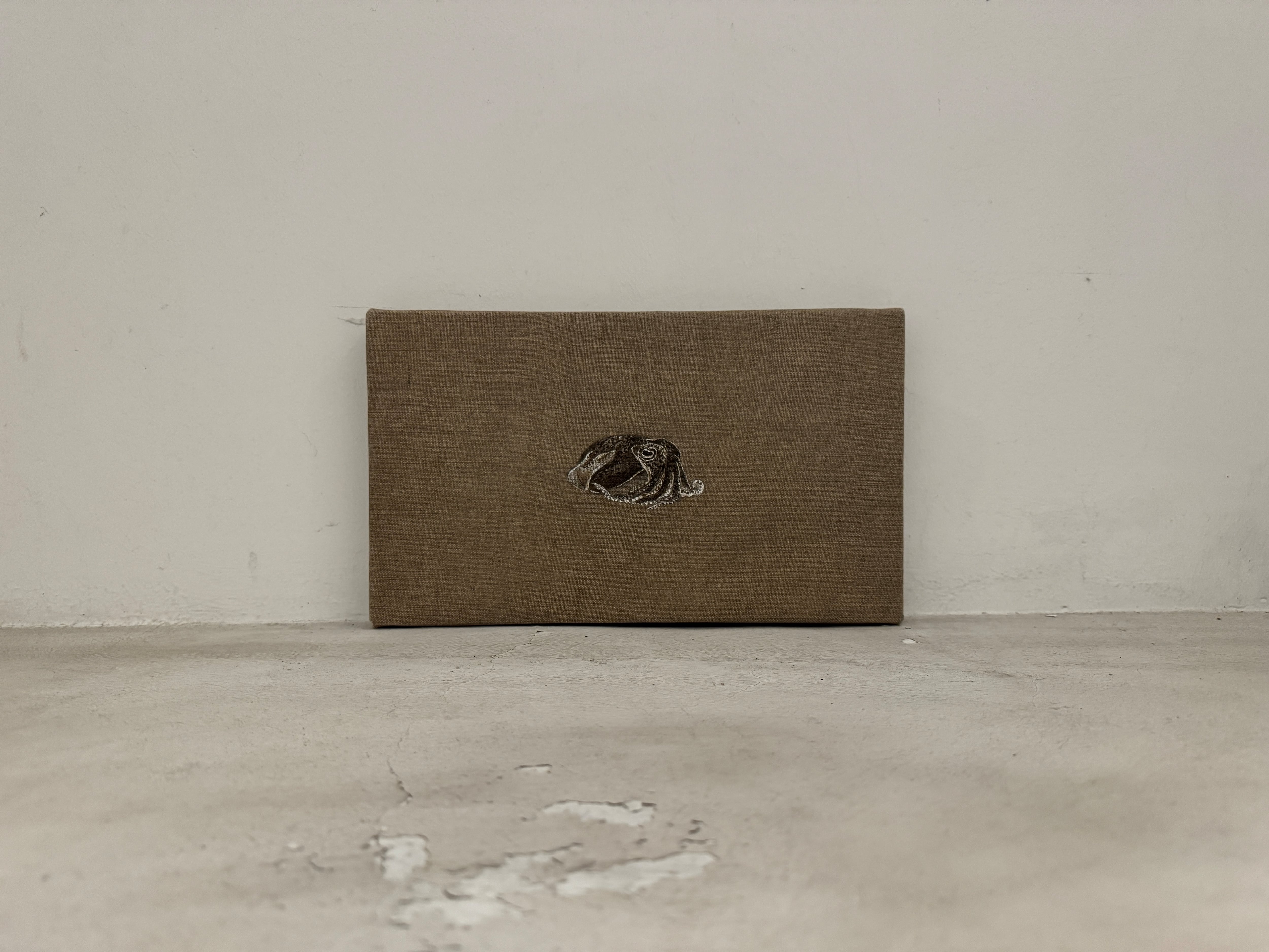 キャンバス、セピア顔料、イカ胡粉、アラビアゴム